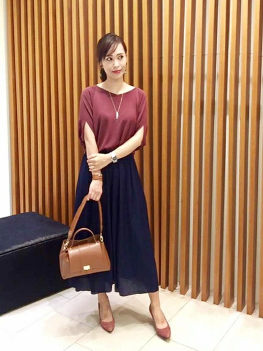暑くても早く秋物が着たい!という方にオススメのコーディネートです。 定番のネイビーに、トレンドのベリーカラーを合わせて秋先取りの配色にしました。 夏素材なのでスカーチョ、ニットどちらもお洗濯可能で暑い夏にもさらりと快適に着て頂けます。