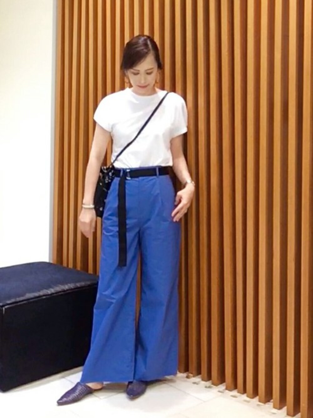 初夏にオススメのお出掛けスタイリングです。 パフスリーブのカットソーに、ブルーのワイドパンツを合わせて、見た目にも爽やかなスタイリングにしました。 トップスをインにしてベルトをポイントにして頂くと、脚長効果もありスッキリとした印象になります。