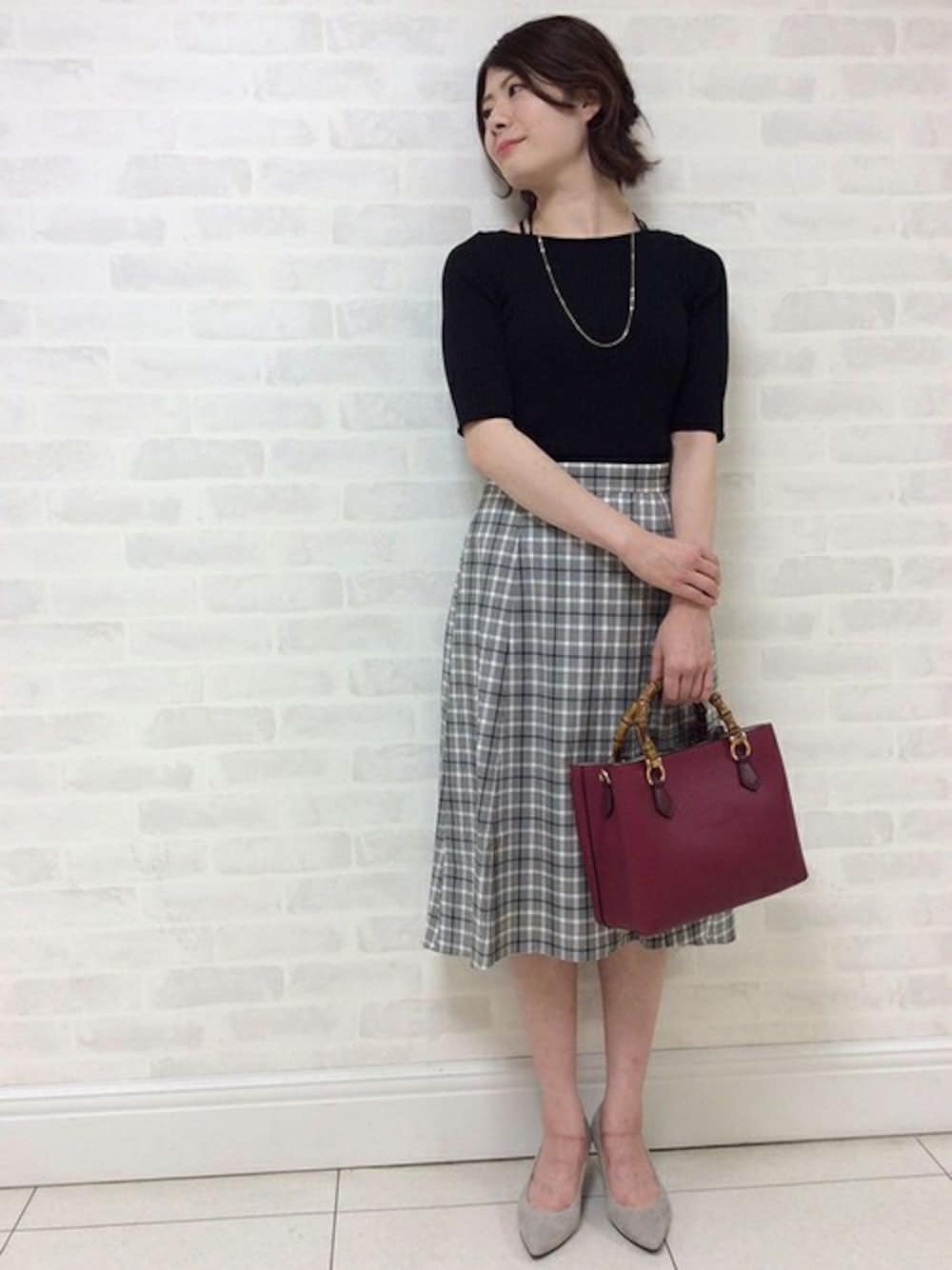 秋もトレンドになるチェック柄を取り入れたキレイ目な晩夏スタイル。 ウエストは一部ゴムが入っているので、ゆったりとしていて着心地も良いです。