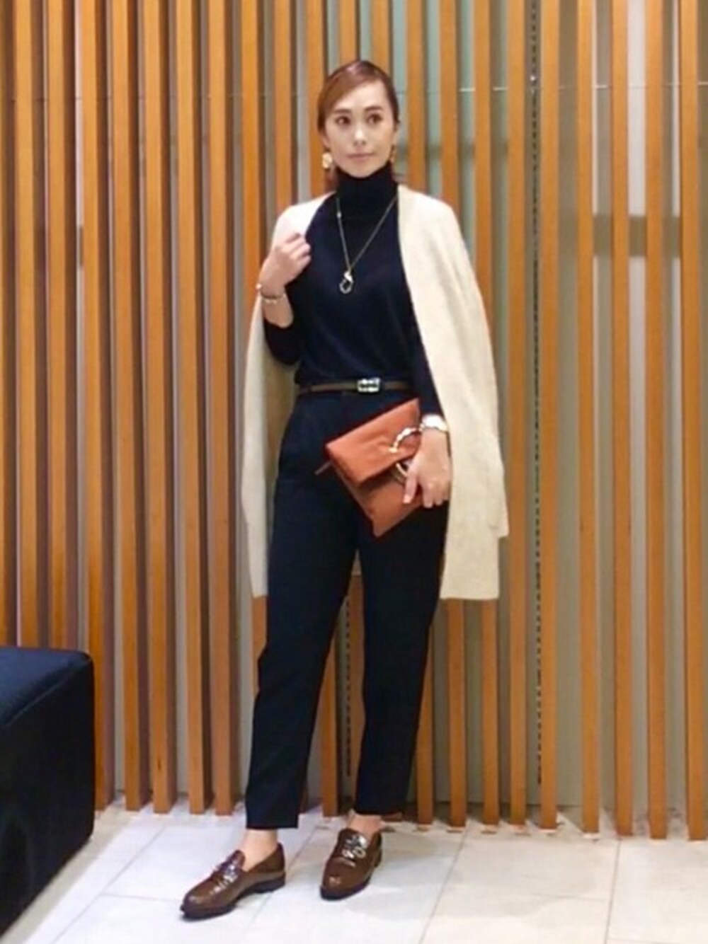 ライフスタイル誌「VERY」とコラボしたテーパードパンツを使用したスタイリングです。 細すぎず太すぎずの絶妙なシルエットでON OFFで大活躍間違いなしのアイテム。 マニッシュなコーデにモヘア混のヘアリーなカーデを羽織って女性らしさをプラスしました。