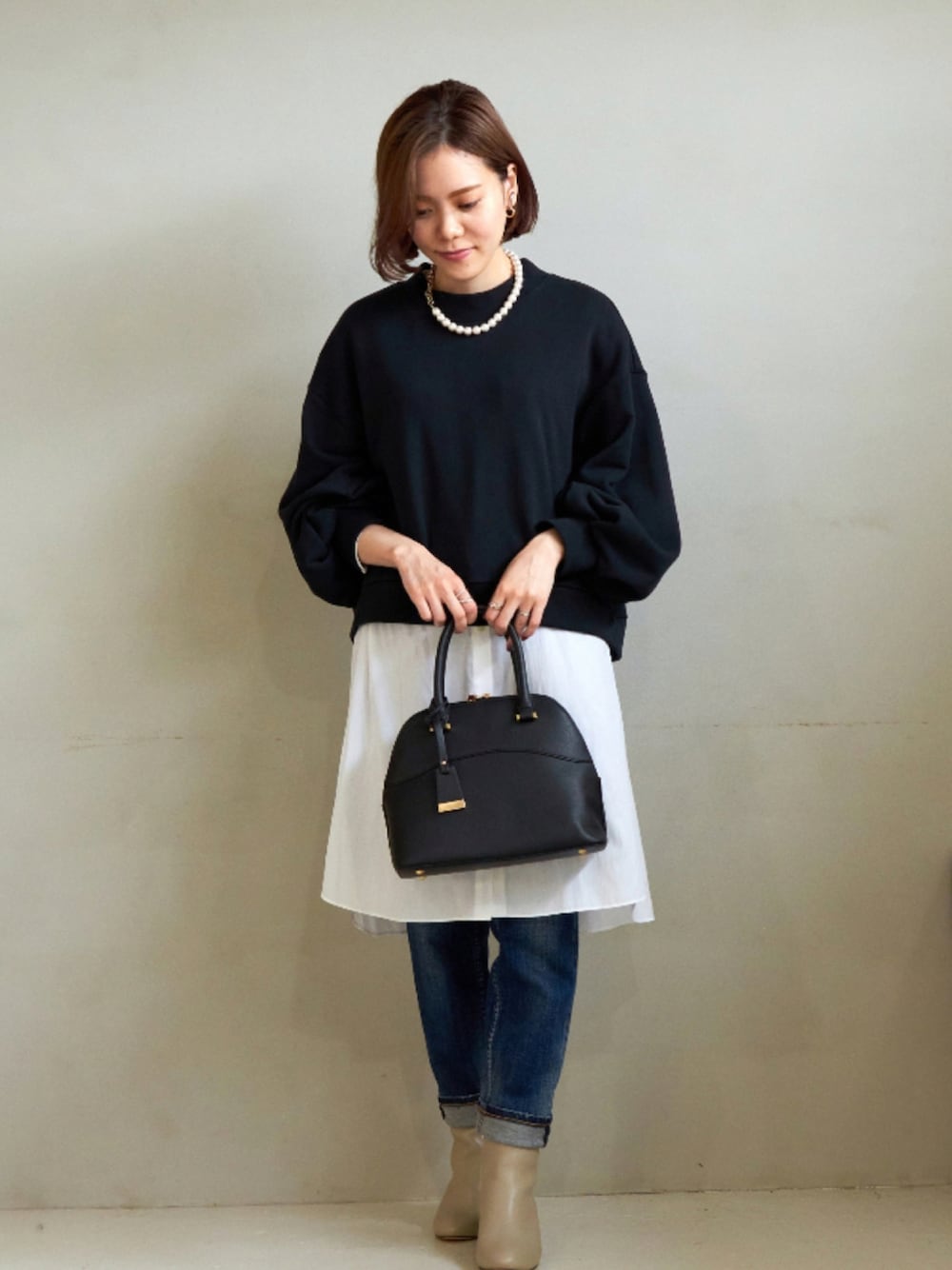 レイヤードが楽しいこの季節、さりげない重ね方がお洒落度を高めるポイントに。 ロングシャツとのレイヤードは、端正な雰囲気を崩さずコーデにリズムを生み出します。 Instagram ▷ untitled_official.jp
