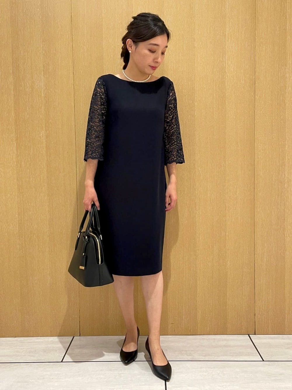 UNTITLED(UNTITLED OFFICIAL)のワンピース「◆レーススリーブツイルワンピース」を使ったコーディネート