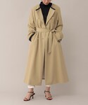 【モデル身長153cm】カラーレスコートは落ち感がありシルエットがとても綺麗です。肩がセットインになっており、スッキリとお召し頂けます。パイピングがアクセントになり1枚羽織るだけでお洒落な雰囲気になります。軽やかなドット柄のワンピースを合わせて春らしいコーディネートにしました。