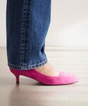 【モデル身長152cm】フェミニンなドットのブラウスとデニムを合わせた、この春おすすめのコーディネートです! ブラウスのほどよい透け感と、綺麗めなカラーパンプスがカジュアル過ぎず、女性らしい印象になります♪