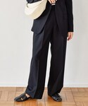 【モデル身長157cm】今年のスーツはマニッシュさがポイント。 メンズぽいシャープなディティールが大人の女性らしさを引き立ててくれます。 リラクシーなムードが旬な印象に。 シンプルなモノトーンにグリーンのバッグをアクセントにしています。