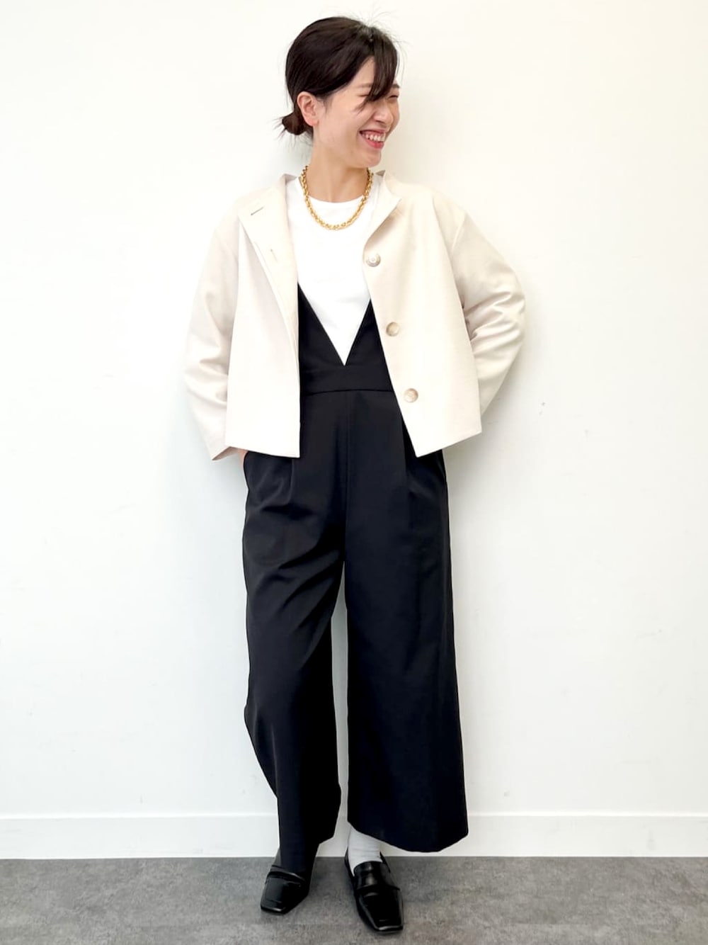 【モデル身長163cm】 春の軽羽織におすすめなノーカラージャケット。 ソフトな生地感と程よいゆとりでラクな着心地、ロングボトムとバランスを取りやすい腰丈です! カジュアルなコーデにプラスして少しきちんと見せるとより女性らしい印象になります。
