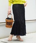 【モデル身長157cm】トレンドのイエローカラーをブラックのロングスカートと合わせて、大人に着こなしました。 フロントのタックディティールがアクセントのブラウス、程よく腕が隠れる袖丈も嬉しい。落ち感があり、色々なボトムスとも相性が良いです。 スカートは、この夏におススメのワッシャーティアードデザインです。くるぶし程の絶妙な丈感と、スッキリとしたシルエットも魅力。