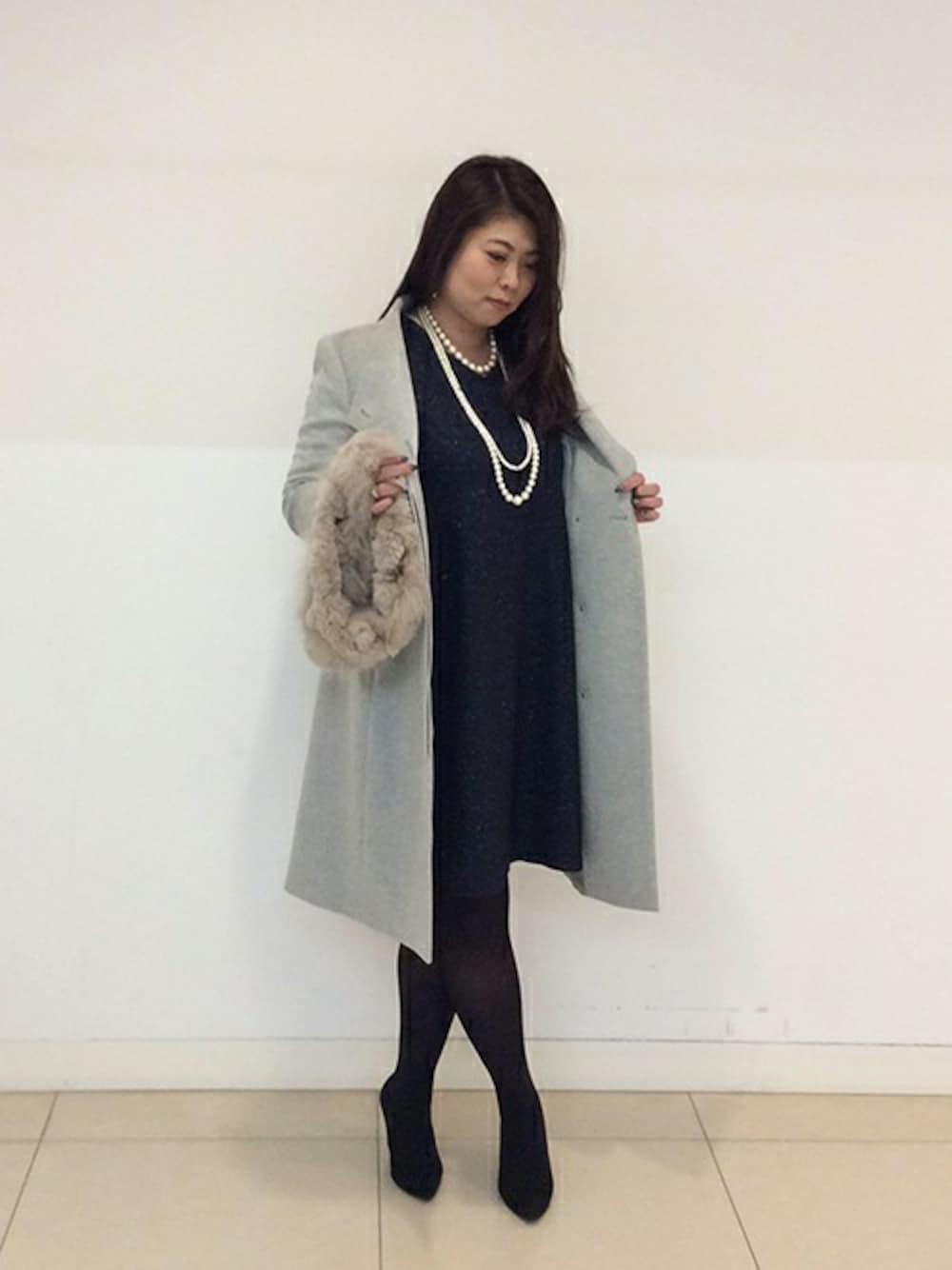 これからのシーズンに忘年会やパーティーで着回しできるAラインのワンピース。 体のラインもカバーでき、169㎝の私でも短くなり過ぎない丈感で女性らしさUP! ロングコートを合わせて、カッコ可愛い冬スタイリングの完成。