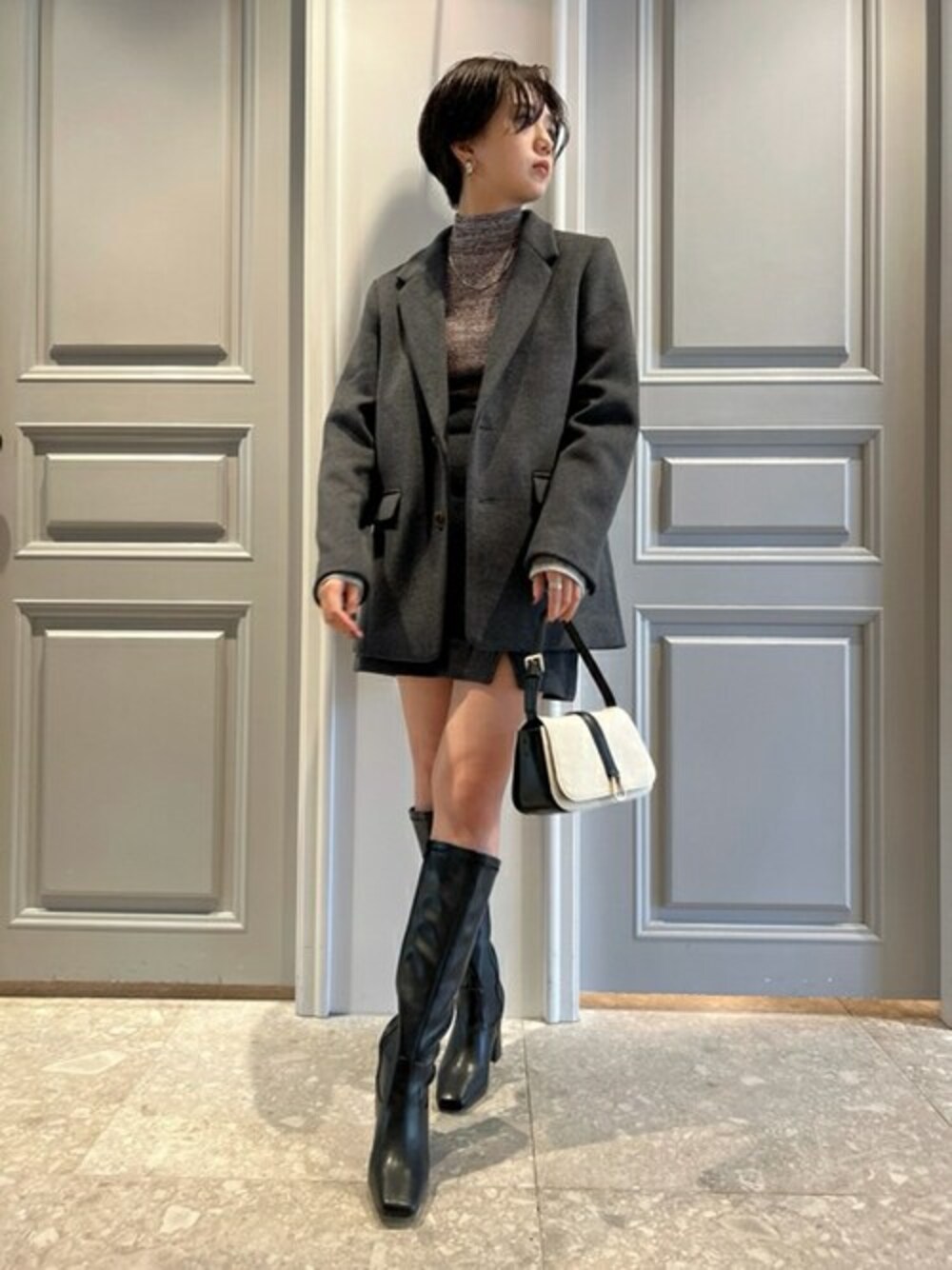 身長:156cm/ 骨格タイプ:ストレート/ パーソナルカラー:ブルべ夏 【オーセンティックなデザインで着まわしやすく長く活躍してくれるジャケット】 着用サイズ:F やや長めのレングスでパンツともスカートともバランスが取りやすく、 スタイリングの幅がぐっと広がる1着です。 同素材を用いたスカショーパン(LWFP225010)とセットアップでスタイリングするのもオススメ。 【デザイン性と実用性を兼ね備えた人気のスカショーパン】 着用サイズ:0 毎年人気を集めるスカショーパンが今季も登場。 内側がショートパンツで安心感があるので、今年トレンドのミニ丈にも気軽に挑戦して頂けます。 同素材のジャケット(LWFJ225009)とセットアップでスタイリングするのもおすすめです。 【幅広いコーディネートにマッチするベーシックなロングブーツ】 着用サイズ:S ストレッチ素材を使用した程よいフィット感のあるロングブーツ。 インソールには厚地のクッションを搭載し足への負担も軽減しています。