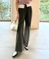 身長:163cm/骨格タイプ:ストレート/パーソナルカラー:ブルベ 【2WAY仕様でアレンジを楽しめるハイウエストデザインのワイドパンツ】 着用サイズ:0 ウエストを折り返して着用できる2WAY仕様のハイウエストパンツ。スタイルアップして見えるようセンタープレスを施し、身体のラインを拾わないワイドシルエットに仕上げました。フロントにあしらわれたドットボタンでシャープな印象に。ウエスト裏は白の配色にし、マーベルト風のストライプ生地を挟み込んでマニッシュな要素をプラスしています。バックウエストはゴム仕様で穿き心地も考慮し、ベルトは取り外し可能で単品としてもお使いいただけます。