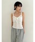 身長:152cm/骨格タイプ:ウェーブ/パーソナルカラー:イエベ 【一つ一つ手作業でビーズやビジューを刺繍したスペシャルメイドなデニムジャケット】 着用サイズ:F ビジューやビーズを一つ一つ手縫いで仕立てた特別なデニムジャケット。ウエストまでのクロップド丈が今季らしく、袖山と袖口にタックを取って膨らみを出したボリュームスリーブとの女性らしいバランス感がこだわりです。どこか懐かしさを感じる、古着のようなヴィンテージムードがトレンドライクな表情。ワンピースやカットソーに合わせるだけで一気に華やかな着こなしが叶い、おそろいのミニスカート(品番LWFS244803)とのデニムセットアップもおすすめです。 【ボタンフライで開閉ができレイヤードも楽しめるビジューデニムミニスカート】 着用サイズ:1 ビジューやビーズを一つ一つ手縫いで仕立てた特別なデニムミニスカート。ウエストをやや緩めにしたトレンドライクなミニ丈ながら、ベースはシンプルな台形型シルエットで合わせるトップスを選ばず着回しが効きます。フロントはボタンフライで開閉ができ、デニムの上に重ねて旬のレイヤードスタイルも楽しめます。おそろいのデニムジャケット(品番LWFJ244802)や、タックワイドデニムパンツ(品番LWFP244084)とセットアップ風に着用もおすすめです。 【繊細なクロシェ編みとローズモチーフがポイントのニットキャミソール】 着用サイズ:F 一つひとつ手作業でつくるローズモチーフがロマンティックなニットキャミソール。ナチュラルなタッチの糸を、立体感のある繊細な透かし柄で編み立てました。長めに垂らしたリボンでモードなエッセンスをプラスし、端はピコ刺繍で縁取り細部まで抜かりなく仕上げています。フレアデニムやマニッシュなパンツでバランスをとるのがトレンドライク。ボレロカーディガン(品番LWND242070)とアンサンブルで着用できます。