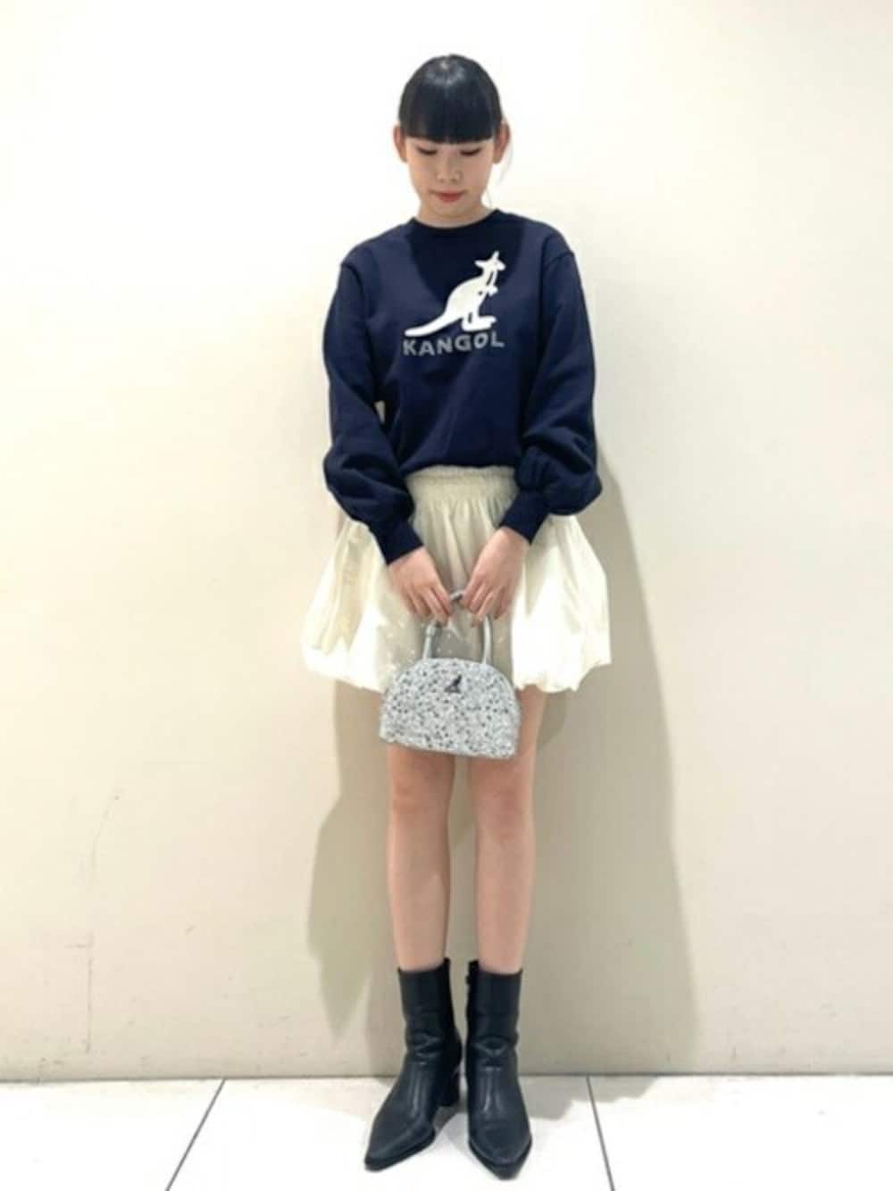 身長:166cm 【KANGOLロゴを大胆にラインストーンで表現した裏毛スウェット】 着用サイズ:F 適度な厚みのある裏毛スウェットに、KANGOLのロゴを大胆にラインストーンで表現した一着。「LILY BROWN」らしいキラキラとしたデザインで、シンプルな中にも華やかさを持たせたアイテムです。絶妙なオーバーサイズが愛らしく、ゆるっとルーズなサイジングが女性らしさを強調。ミニボトムスや甘さのあるアイテムとの相性抜群です。 【ビスチェとして2WAY着用可能なシャーリングバルーンミニスカート】 着用サイズ:F 今季トレンドのバルーンシルエットが愛らしいミニスカート。シャーリングデザインで腰周りのボリュームを抑え、スタイルアップして見えるようバランス良く仕上げました。ウエストの紐は調整可能なので、ハイウエストでもローウエストでも着用いただけます。紐を外に出せばアクセントとなり、ビスチェとしても着用できる嬉しい2WAY仕様。ニットやスウェットなどカジュアルなアイテムと好相性です。