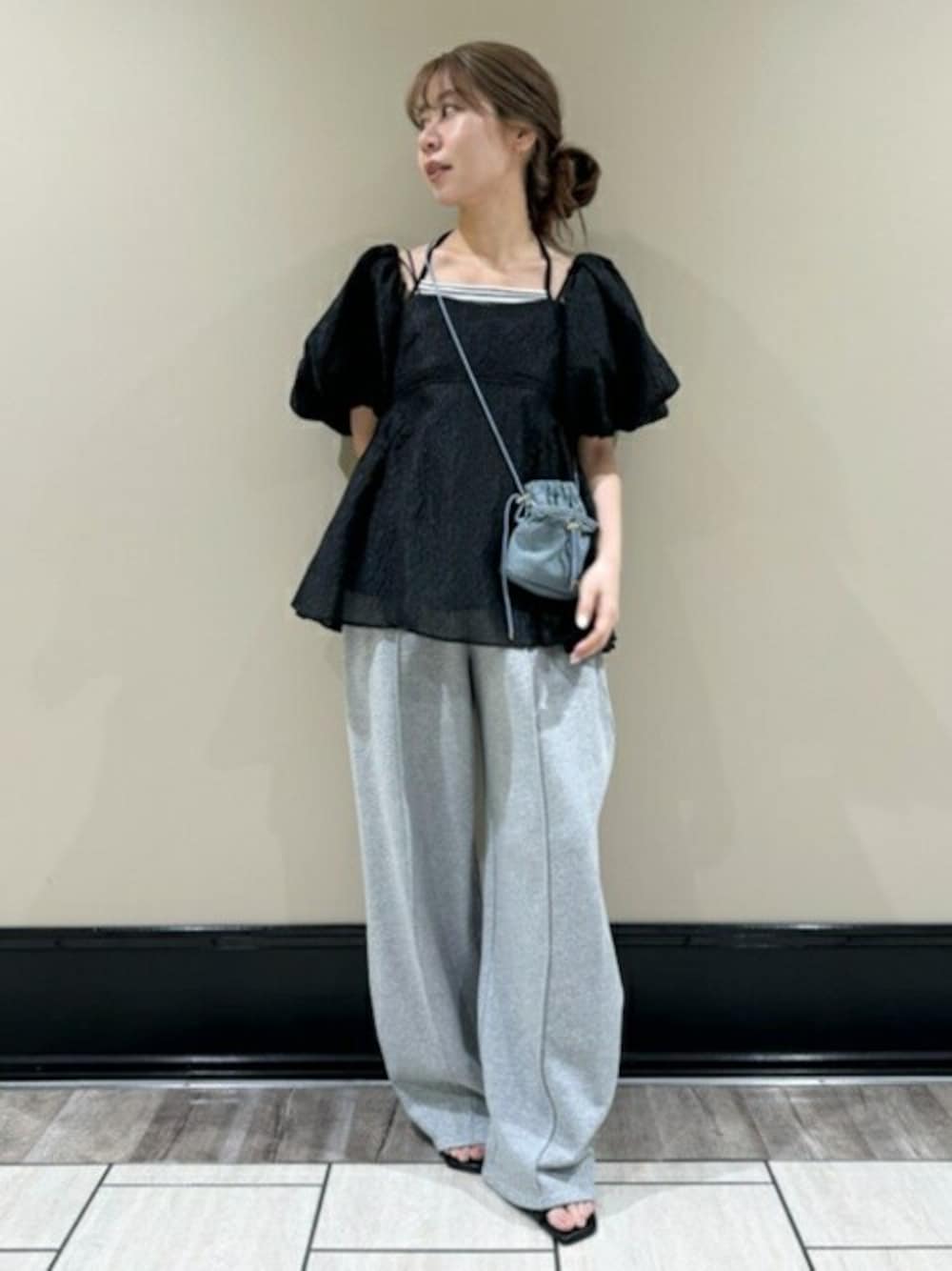 身長:152cm/骨格タイプ:ウェーブ/パーソナルカラー:イエベ秋 【大人気の3Wayペプラムビスチェの新作が登場】 着用サイズ:F 毎シーズン大人気のペプラムビスチェが、春らしいデザインで再登場。女性らしいボリューム感と程よい肌見せデザインはそのままに、シアー素材を取り入れることで軽やかで季節感のある印象に仕上げました。ボタンで簡単に取り外しができ、パフスリーブ、オフショルダー、キャミソールと3Wayの着こなしが楽しめます。肩紐は長さ調節が可能で、上身頃はシャーリング仕様のためフィット感が高く快適に着用いただけます。 【イン、アウトどちらでもレイヤードが楽しめるホルターキャミセットカットトップス】 着用サイズ:F ホルターネックのキャミソールとクロップド丈カーディガンがセットになったアイテム。キャミソールはリボンデザインを採用しており、お好きな長さに調節可能です。キャミソールはインナーとしてもアウトとしても使用でき、多彩なレイヤードスタイルを楽しめます。クロップド丈カーディガンは程よいコンパクトなシルエットで、どんなコーディネートにも合わせやすい万能アイテム。セットでも単品でも着回しが効くデザインで、季節の変わり目にも活躍します。 【ワイドシルエットが新鮮な表情を醸すスウェットパンツ】 着用サイズ:F リラックス感とトレンド感を兼ね備えたワイドシルエットの裏毛スウェットパンツ。サイドに施されたタックデザインが立体感をプラスし、洗練された印象を演出します。裾に向かって細くなるテーパードシルエットは、足元に生地が自然にたまる絶妙なデザインでこなれ感を演出。ウエストにはゴムと紐が通されており、紐でサイズ調整が可能です。左腰にはLILY BROWNのモチーフ刺繍を施し、さりげないアクセントに。同素材で展開されているビスチェ(品番LWCT251142)とセットアップでの着用もおすすめです。