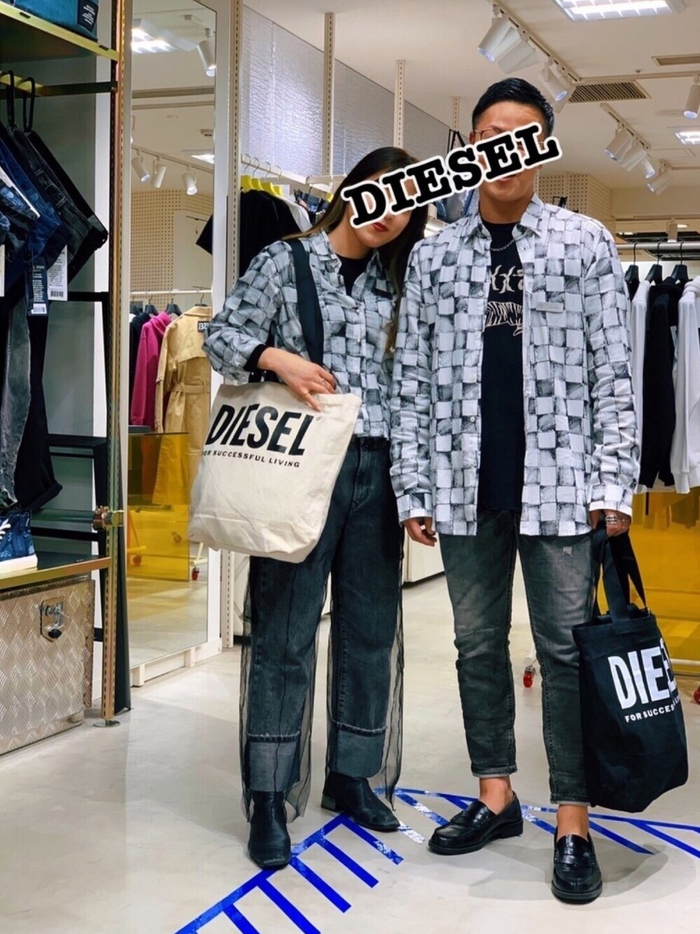 # リンクコーデ # チュール×デニム # diesel # デニム # 柄シャツ # キレイめ # カジュアル