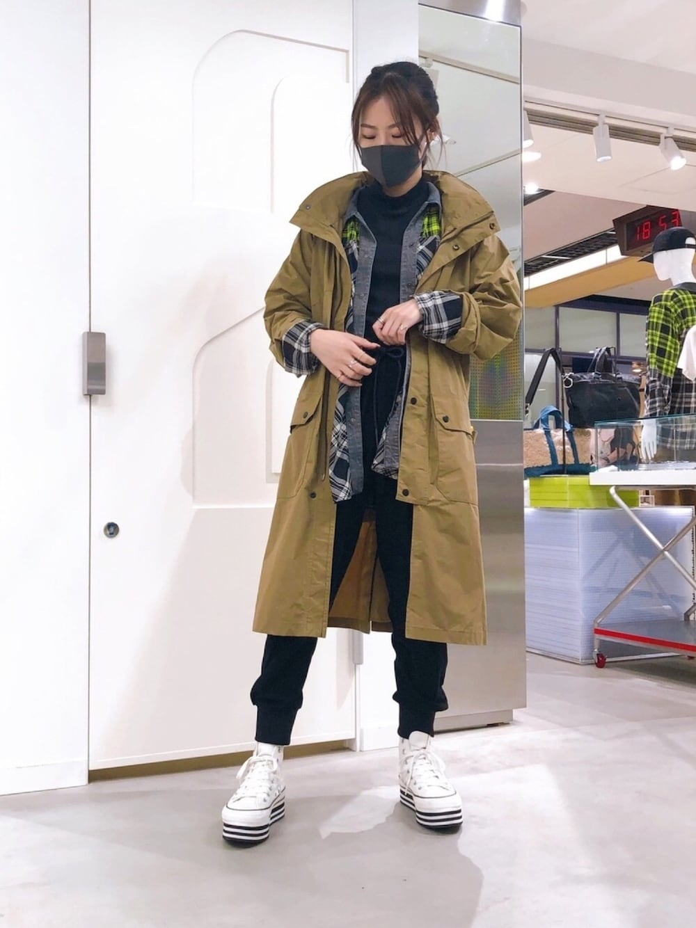 こんばんは☆ 秋服が沢山あり過ぎて決められません! チェックシャツは一枚でも着れて上にアウターも着れる着回し万能♩ イエローがポイントに入っているので、 モノトーンコーデの主役に✨✨ 楽すぎるパンツはメンズのXSを着用してます☆★ 裾のリブが大きめなのが脚を細く見せてくれるので、女性の方にもオススメです☺️🧡 羽織りのトレンチコートもメンズです!☆ バックスタイルにディーゼルらしい バーコードデザインが入っています🧸 とにかく軽いです!!!! 柄のスカート合わせなどもオシャレでオススメ♩🛒