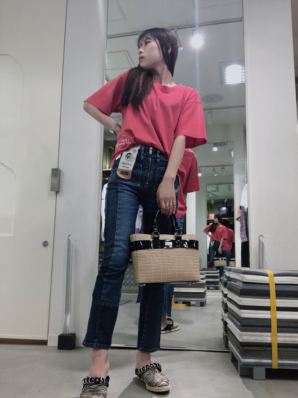 우타너 (うたの)のデニムパンツ「DIESEL SS21 レディース フレア ブーツカット パッチワーク インディゴ デニム」を使ったコーディネート