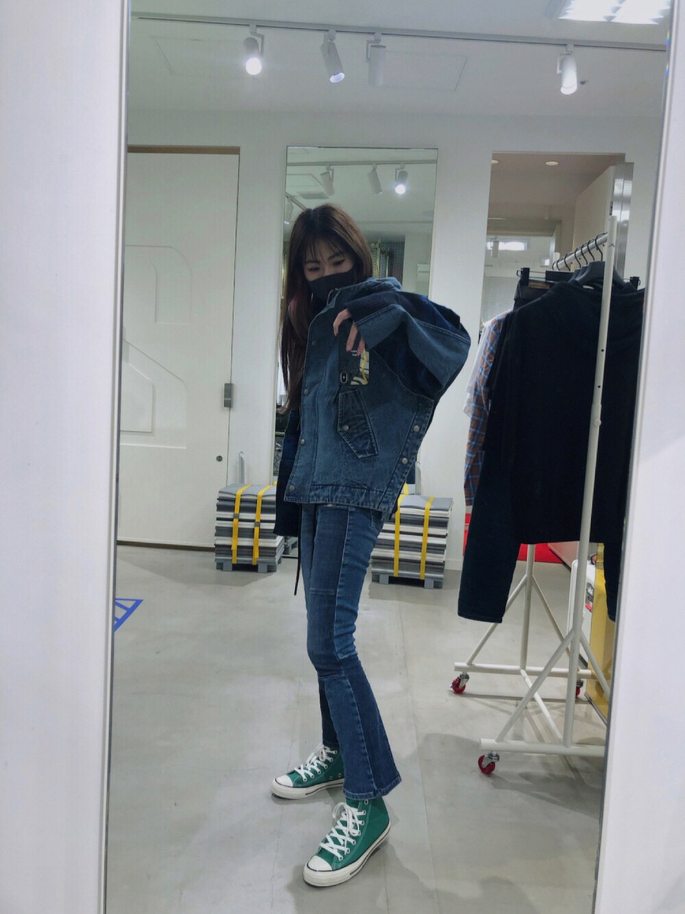 우타너 (うたの)のデニムパンツ「DIESEL SS21 レディース フレア ブーツカット パッチワーク インディゴ デニム」を使ったコーディネート