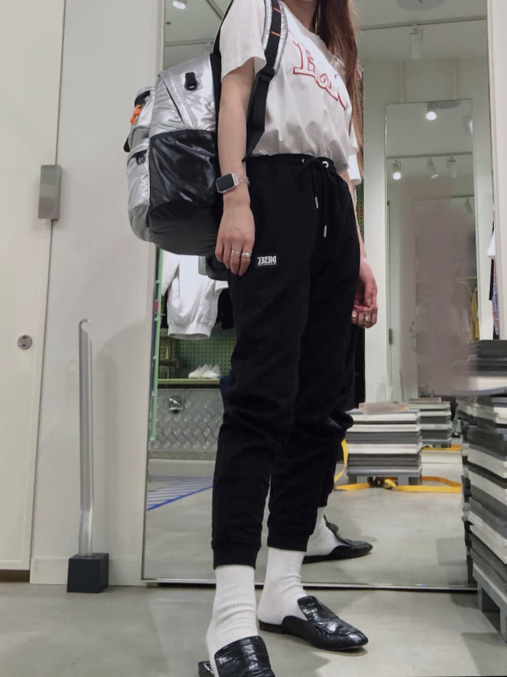 우타너 (うたの)のその他パンツ「メンズ パンツ スウェット イージーパンツ ドローストリング ロゴ プリント」を使ったコーディネート