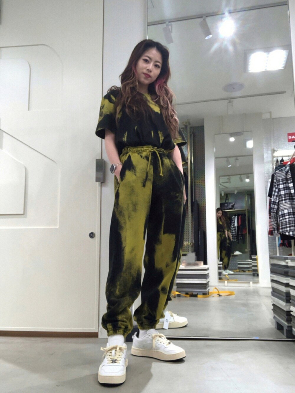 タイダイ柄セットアップ✨◡̈⃝♩ トップスはスウェットとTシャツとあります🥺🍩💓 セットアップでも単品でも一際目立つので、可愛いです😍♡ スニーカーも新作ですっ!👟 カラバリもあるので是非、見て見て下さい🪅☁️