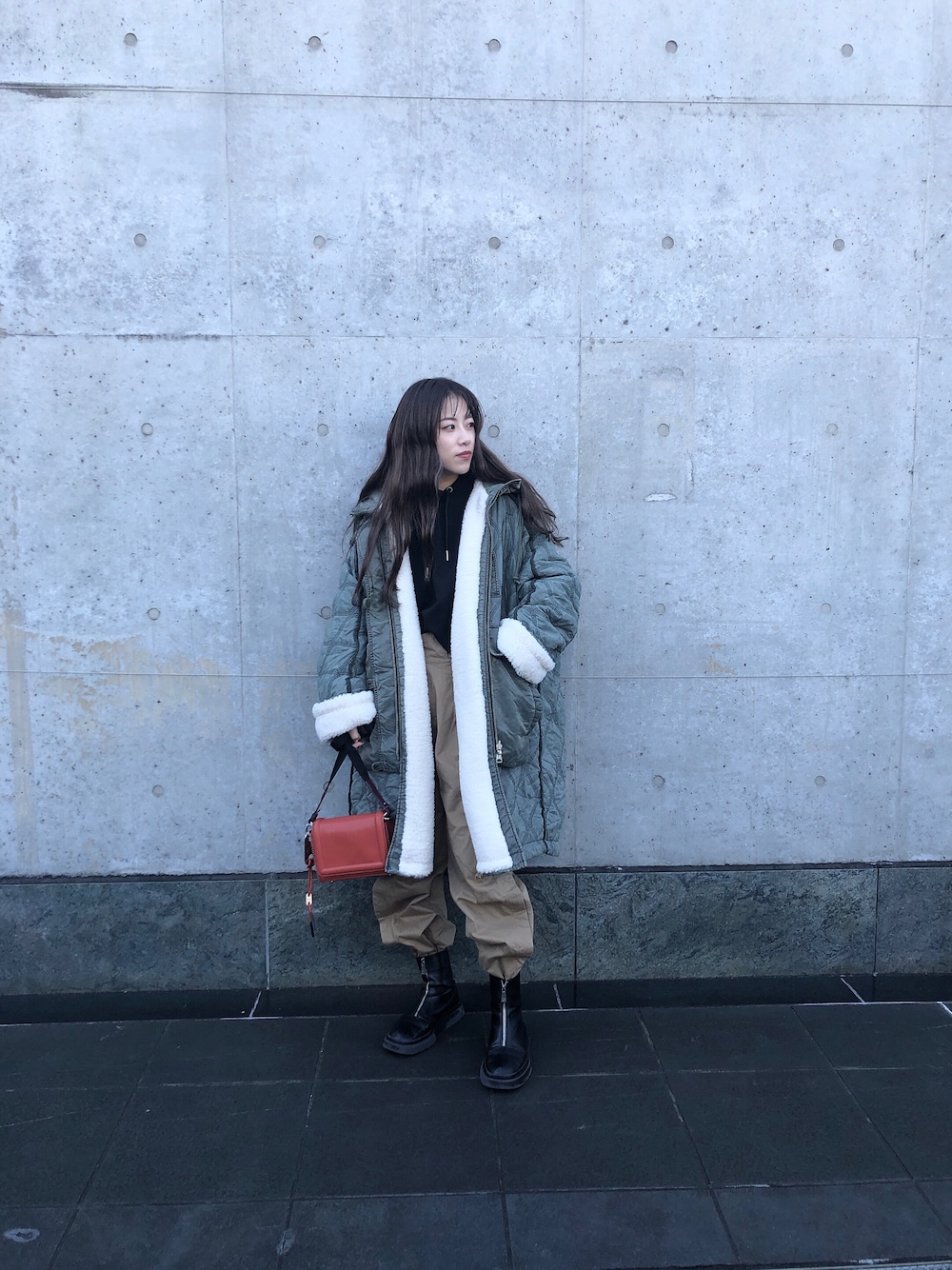 우타너 (うたの)のその他アウター「レディース オーバーサイズ コート リバーシブル ボア 中綿 フード」を使ったコーディネート