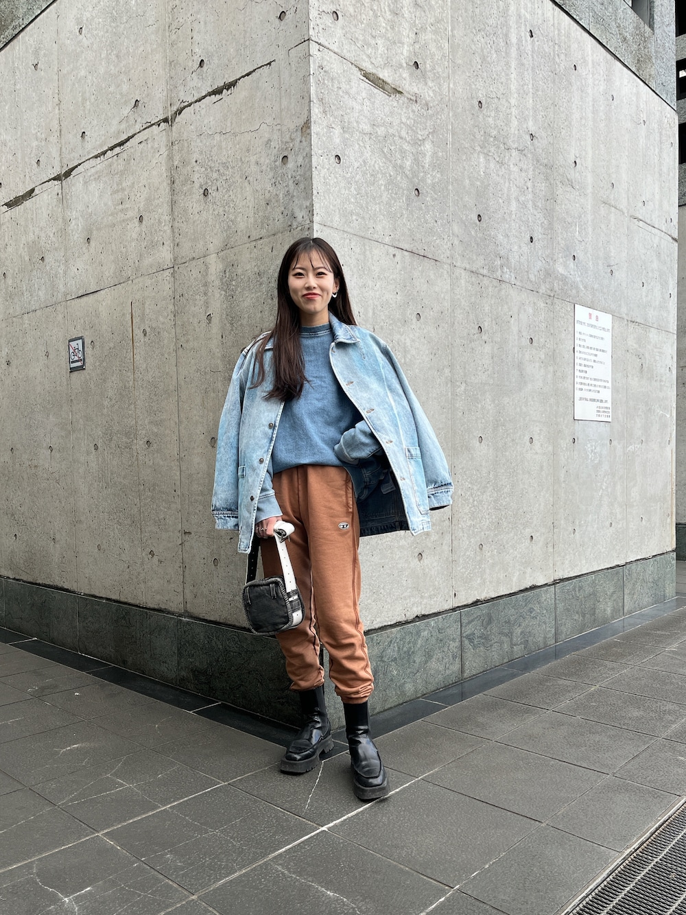 デニムコーデにしましたっ!!👖🙆🏻♀️💓 バッグ以外はメンズですが、 色合いとメンズライクな格好が可愛いくて好き🥺💡🍰