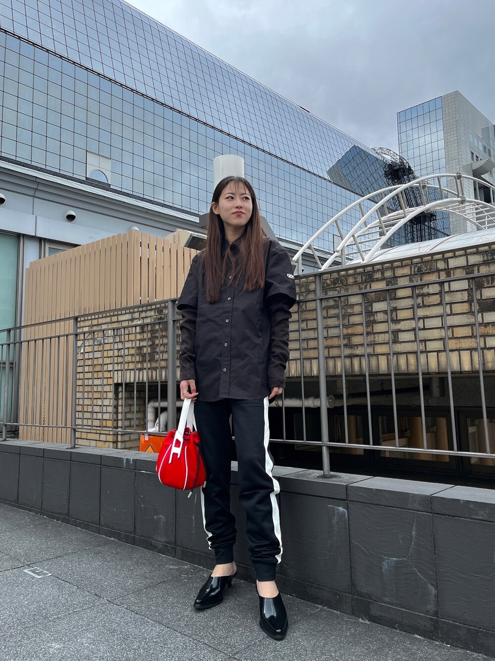 メンズシャツ👔はレイヤード風になってて一枚でも凄くオシャレに見える👀🌼 ブラック×レッド コーデ❤️🖤