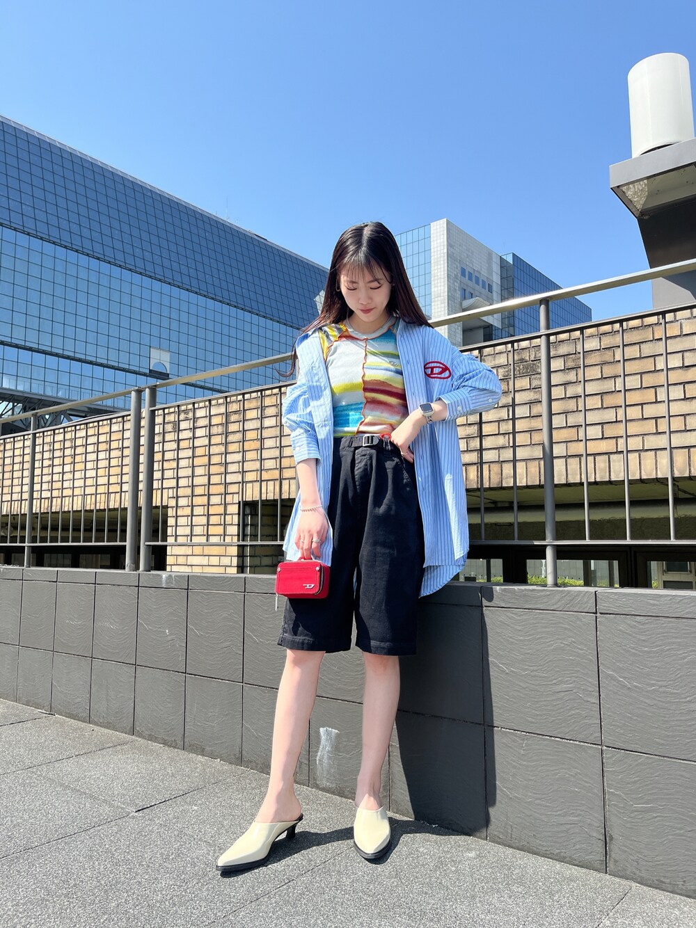 メンズライクになりすぎないように足元はミュールで女性らしくしてみました☺️💕✌︎ 綿のシャツは今丁度いい羽織りで使い回し出来るのでオススメです🌟👔