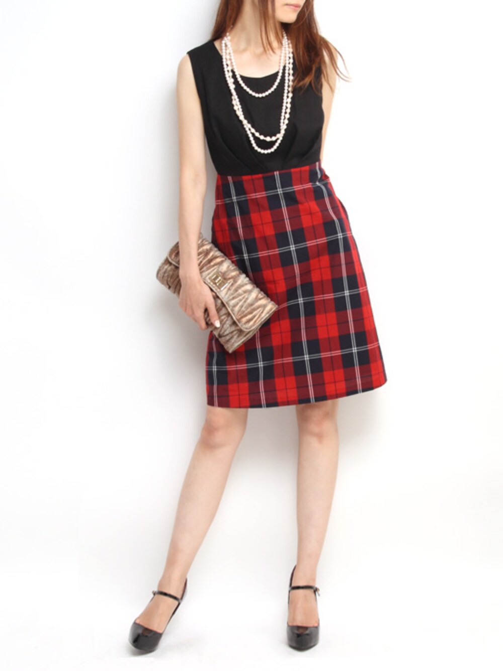 タータンチェックのドッキングワンピース。シルエットがきれいで気に入っています♪