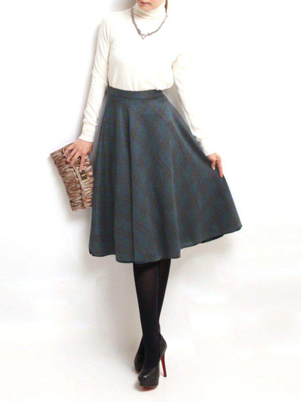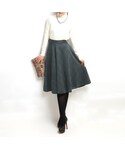 kumiko-kuのスカート「ミモレ丈チェックフレアスカート」を使ったコーディネート