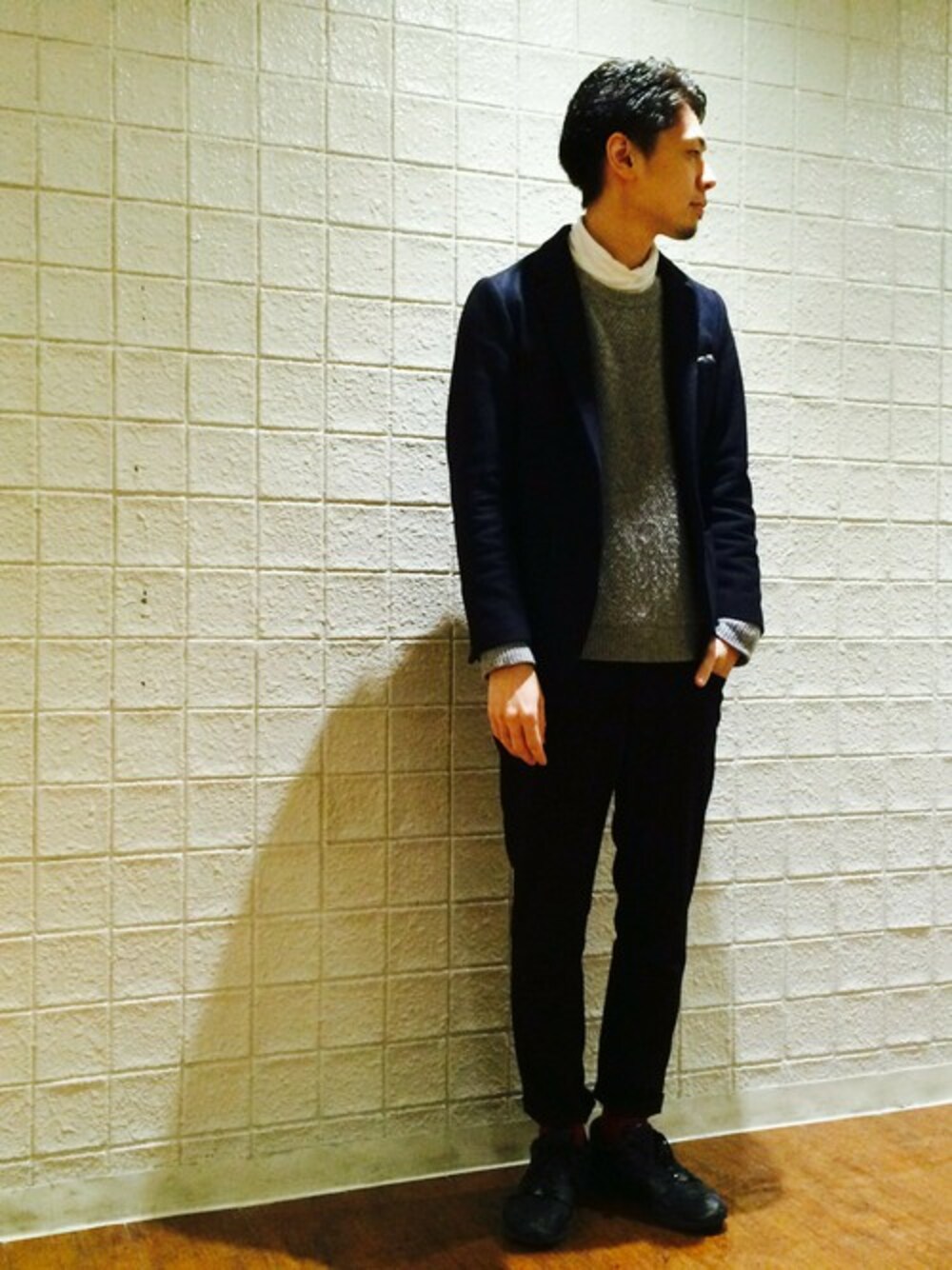 ジャケット、パンツをウール素材にしてウォーム感を出してます。 サイズも細身で着ることでスッキリとした印象に。 今季トレンドのタートルネックがポイントです。