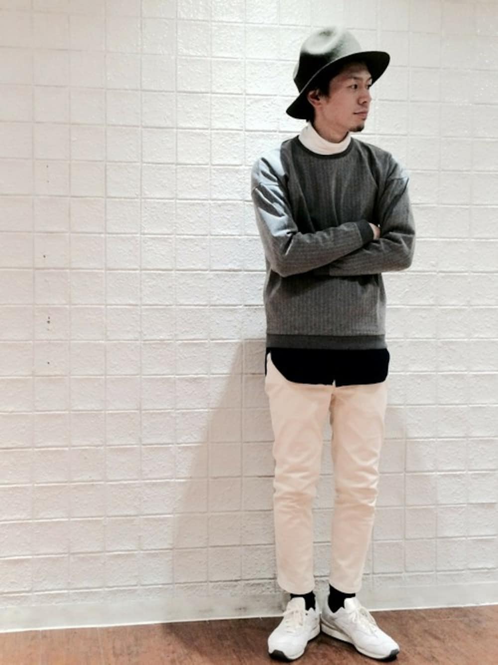 今回もモノトーンコーデ! 今の気分です。 新作のストライプスウェットはトレンドのドロップショルダー。 タートルのカットソーとロングシャツは鉄板ですね。