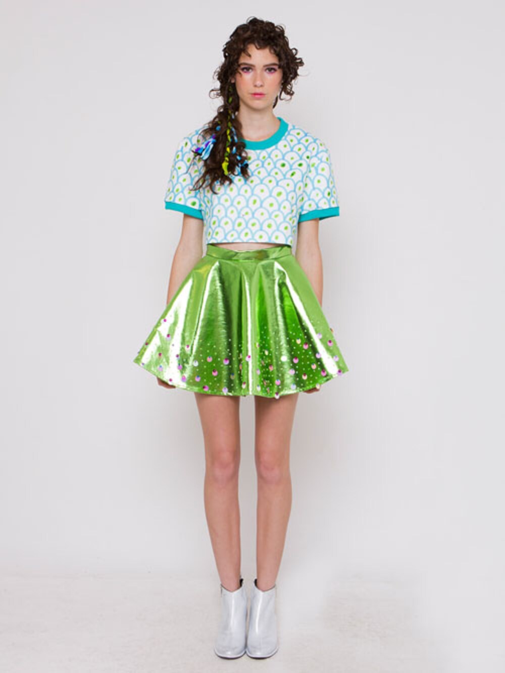 Scallop Crop Top paired with Metallic Gem Shirt Green from YESAH SS14 collection. YESAH x TEETEEHEEHEE available on Yesah.net!
