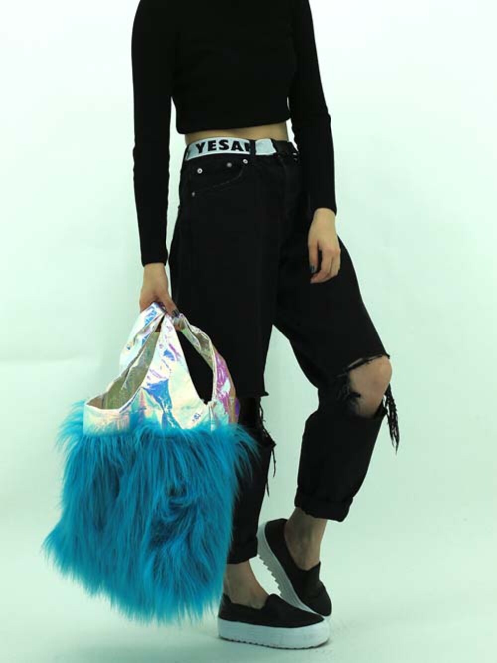 Big Fur Tote Blue from YESTOTES AW14 collection. YESTOTES AW14 available on Yesah.net!