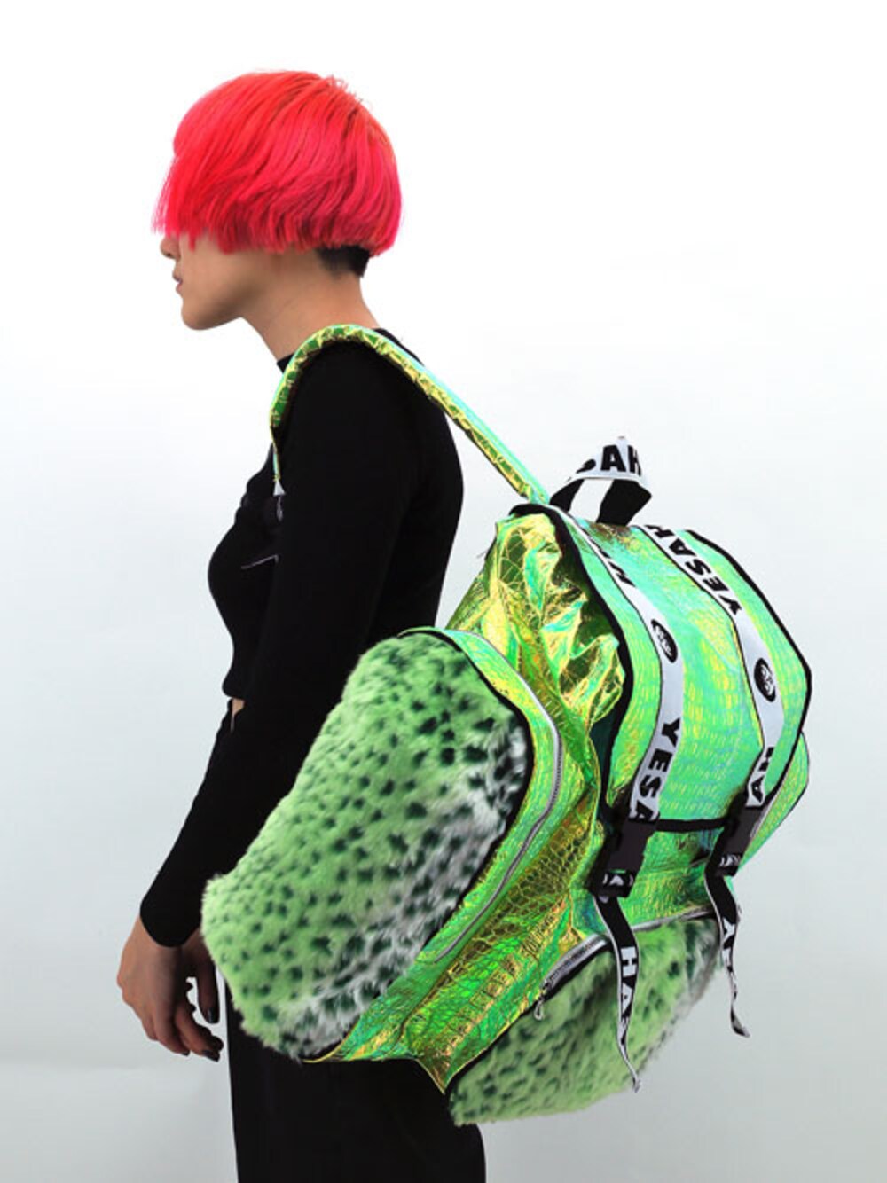 YESAHのバックパック/リュック「Big Holo Fur Backpack Green」を使ったコーディネート