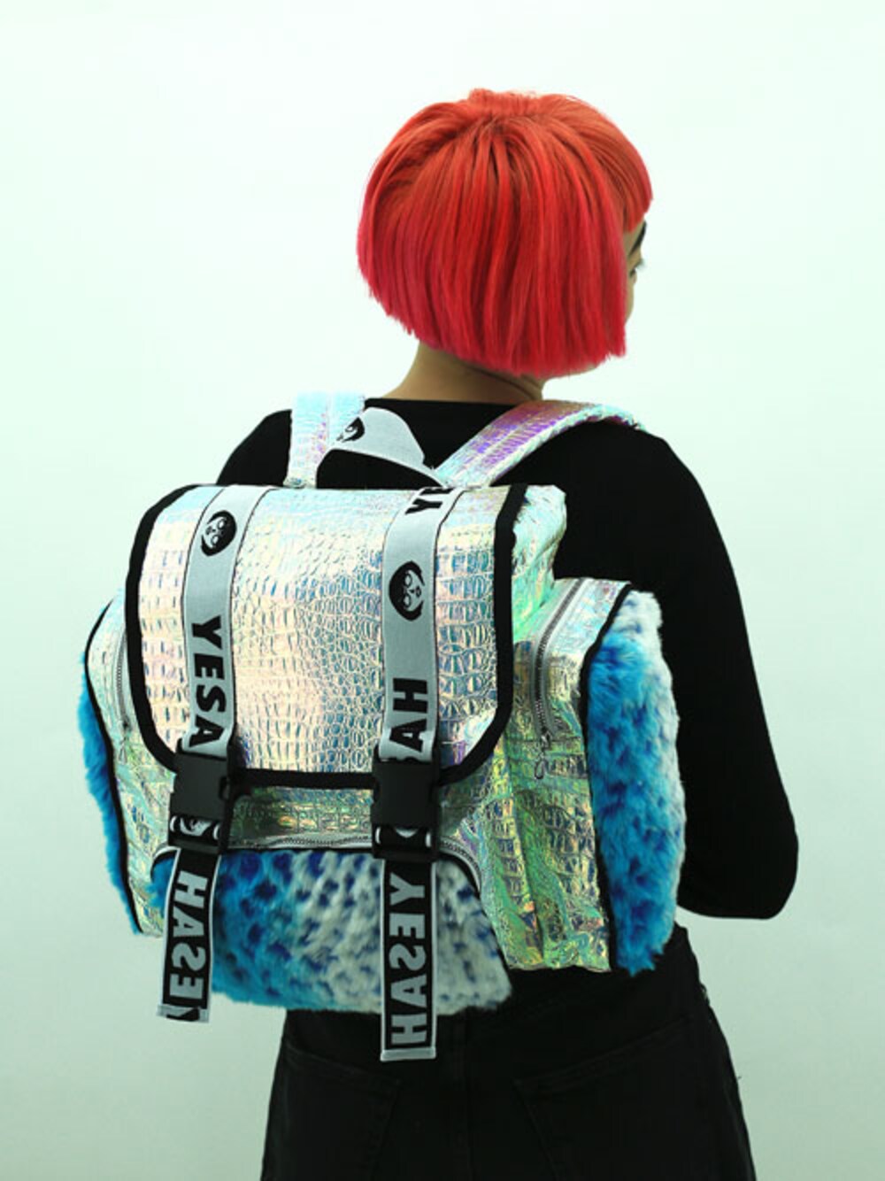 YESAHのバックパック/リュック「Mini Holo Fur Backpack Blue」を使ったコーディネート