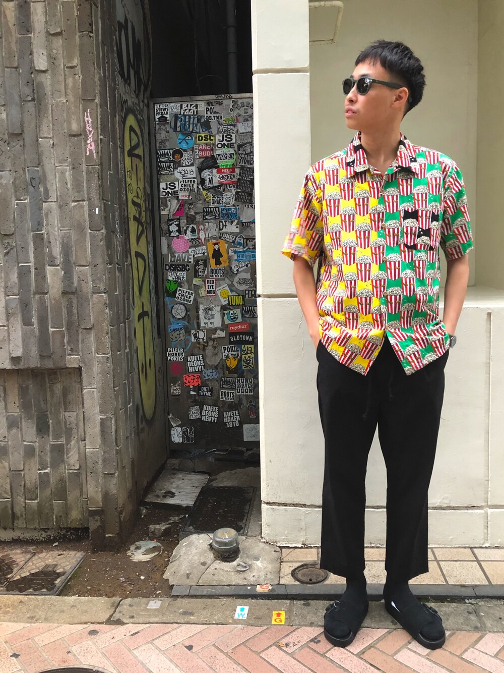 こんにちは! 「mappei」こと、カイです! 今回は開襟の柄シャツをきてコーディネートしました! 個人的にポップコーンのクレイジーパターンがイチオシです✌️ ド派手な柄でも他のアイテムをベーシックなカラーにする事でまとまりがでて、より柄が引き立ちます☝️ そして今オススメのサングラスをかけてお出かけの準備は完了です! 夏は色物や柄物を着る人がたくさんいる中でも1番目立っちゃいましょう! たくさん柄シャツ入荷してるので、是非店頭に遊びに来てください! お待ちしてます〜🔥