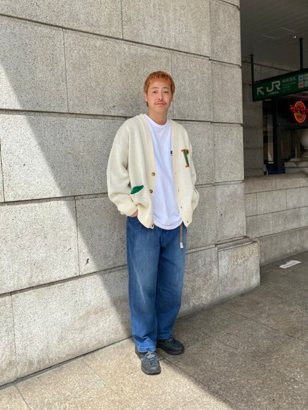 秋の休日はゆるっとカーディガンが着たい。 普段よりも身幅がゆったりしたカーディガンですがデニムもゆるめのサイズ感で合わせてまとまり良くコーディネート。 カーディガンはコットンニットなので半袖の上に着ても気持ちいい肌触りです。 カーディガン:Bomnivore Lサイズ インナー:Goodwear Lサイズ パンツ:Gramicci Lサイズ