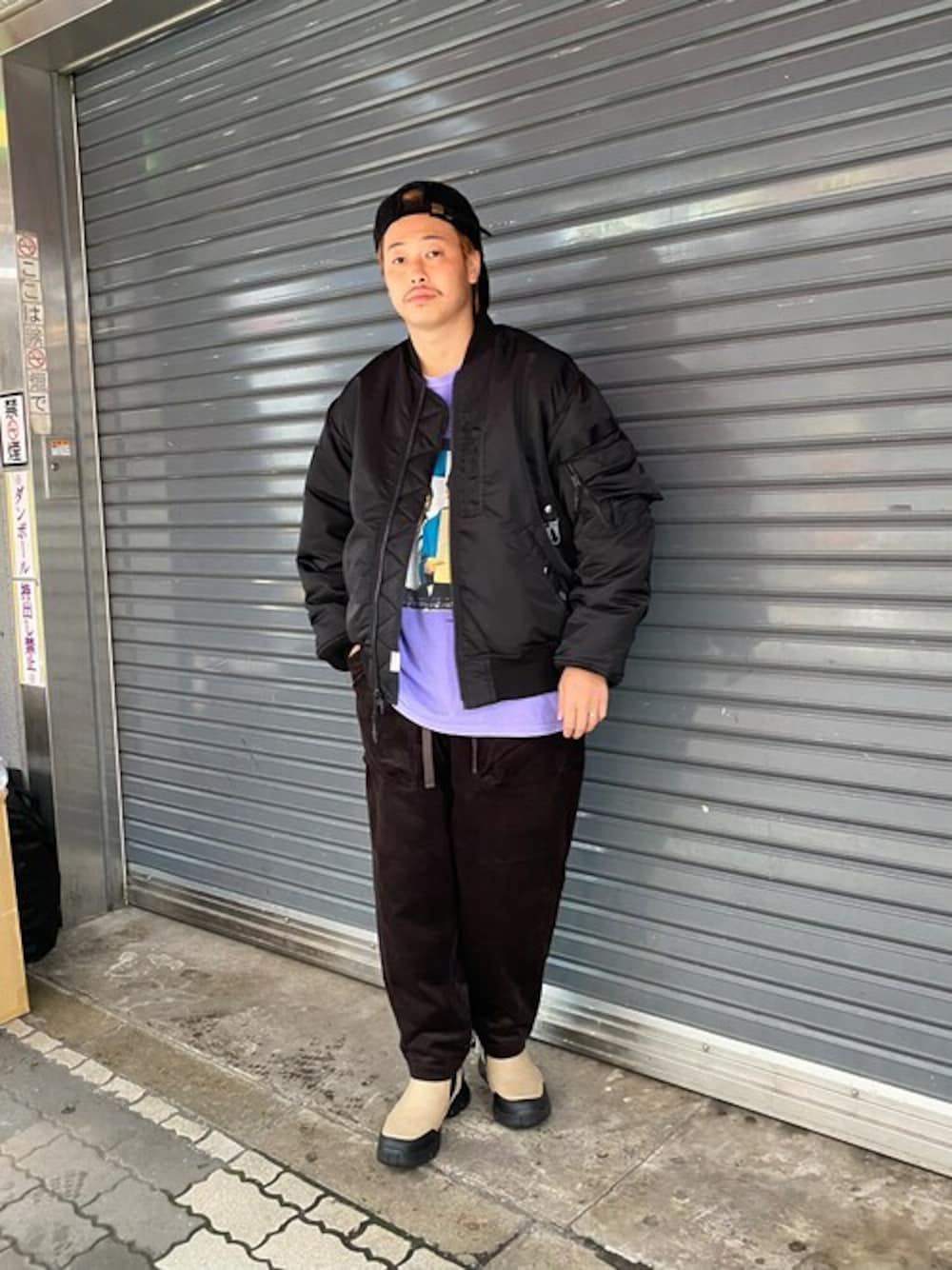 ミリタリー×アウトドアコーディネートです。 MANASTASHとAVIREXのMA-1はサイズ感がゆったりしていてゆったりした着こなしにとてもマッチします。 あえてオーバーサイズに着こなす雰囲気も今のトレンドならではかと。 これからも真冬もずっと使えてイチオシアウターです! ジャケット:MANASTASH×AVIREX Lサイズ ゆったりめ パンツ:MANASTASH Lサイズ ゆったりめ キャップ:CAL O LINE Fサイズ