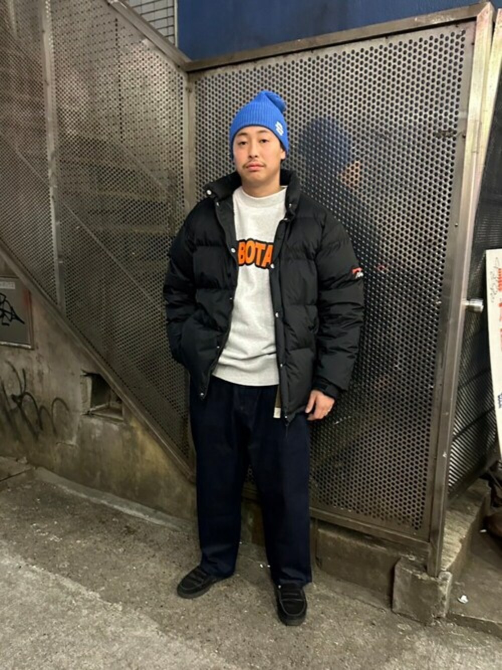 【クラシックダウンをオーバーサイズに】 NANGAダウンの別注はレトロなデザインのアイテムです。 あえて普段より大きめに着ても着丈のバランスもとりやすいボックスシルエットになっています。 太めのデニムやチノパンと合わせて着たい気分ですね。 ジャケット:NANGA×BEAVER Lサイズ ゆったりめ スウェット:cotton pan Lサイズ 少しゆったりめ パンツ:GRAMICCI XLサイズ ゆったりめ キャップ:POLER Fサイズ