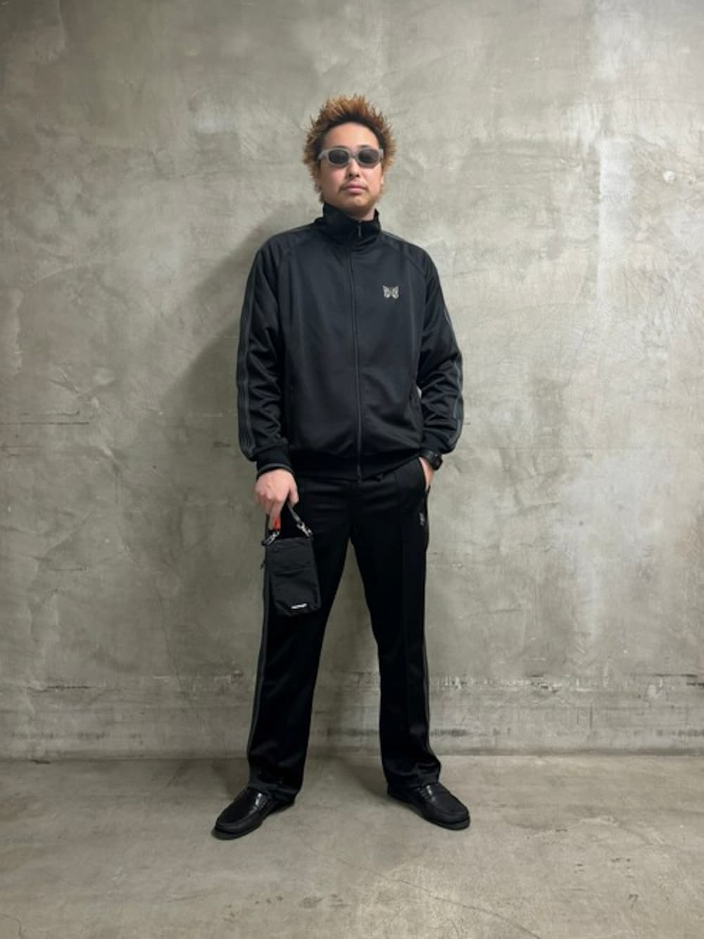 【NEEDLES 別注トラックジャケット】 NEEDLESから別注トラックジャケットが入荷! ブラックにチャコールグレーの渋いカラーリングです! セットアップでも間違いないアイテムです! ジャケット:NEEDLES Lサイズ 少しゆったりめ パンツ:NEEDLES Sサイズ 少しゆったりめ カバン:TOPOLOGY Fサイズ