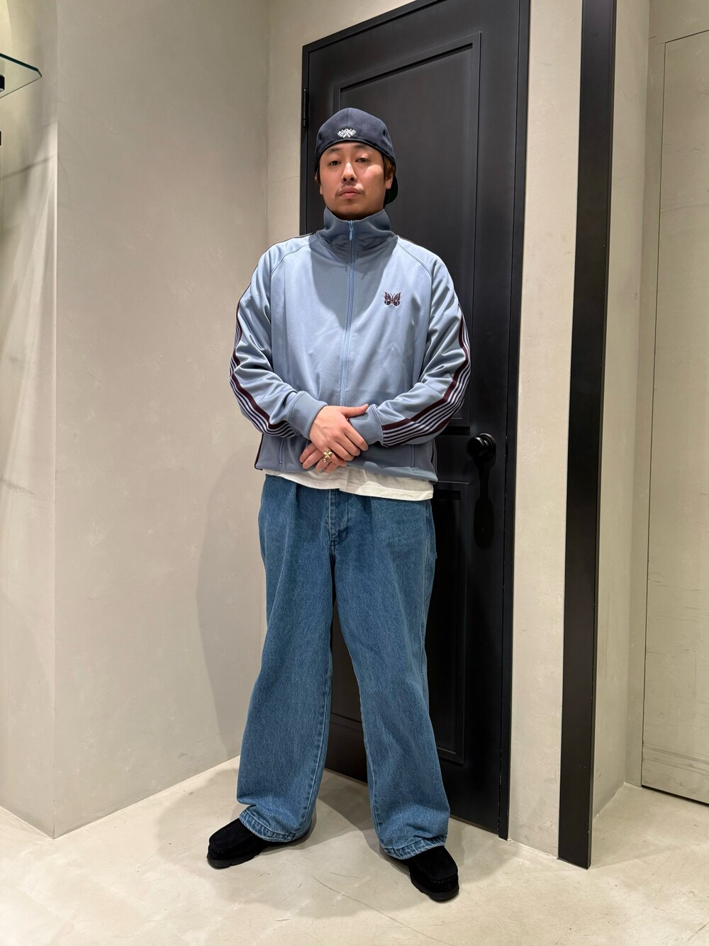 【NEEDLES×BEAVER】 毎シーズン定番のコラボレーションアイテムが今年も入荷。 トラックジャケットのアイスブルー×ブルーベリーパープルのナイスカラーです! デニムに組み合わせて定番的なコーディネートですが、カラーリングで遊べるアイテムです! ジャケット:NEEDLES XLサイズ ゆったりめ パンツ:Bomnibore Lサイズ ゆったりめ シューズ:CLARKS UK8 キャップ:Chaos Fishing Club