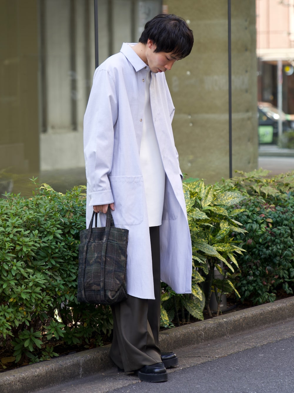 YOSHI(Casper John 神南店)のその他アウター「Long shirts coat/ロングシャツコート」を使ったコーディネート