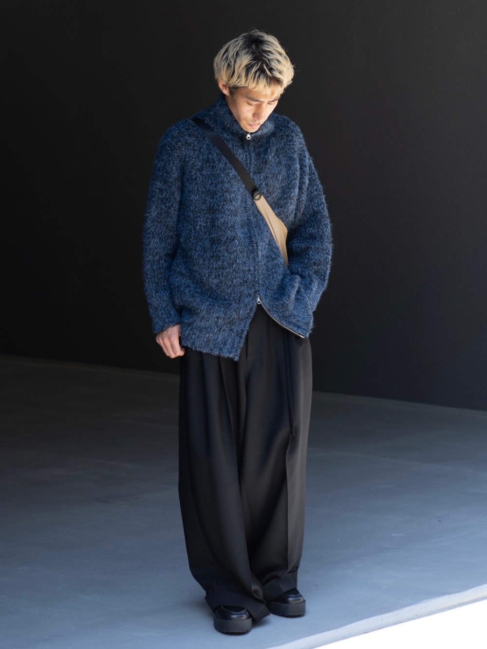 閲覧ありがとうございます。 Instagram⇨@nakamura_casperjohn ウールミックスドライバーズニットをメインに使用したコーディネート ブルー×ブラックの相性抜群の組み合わせ◎