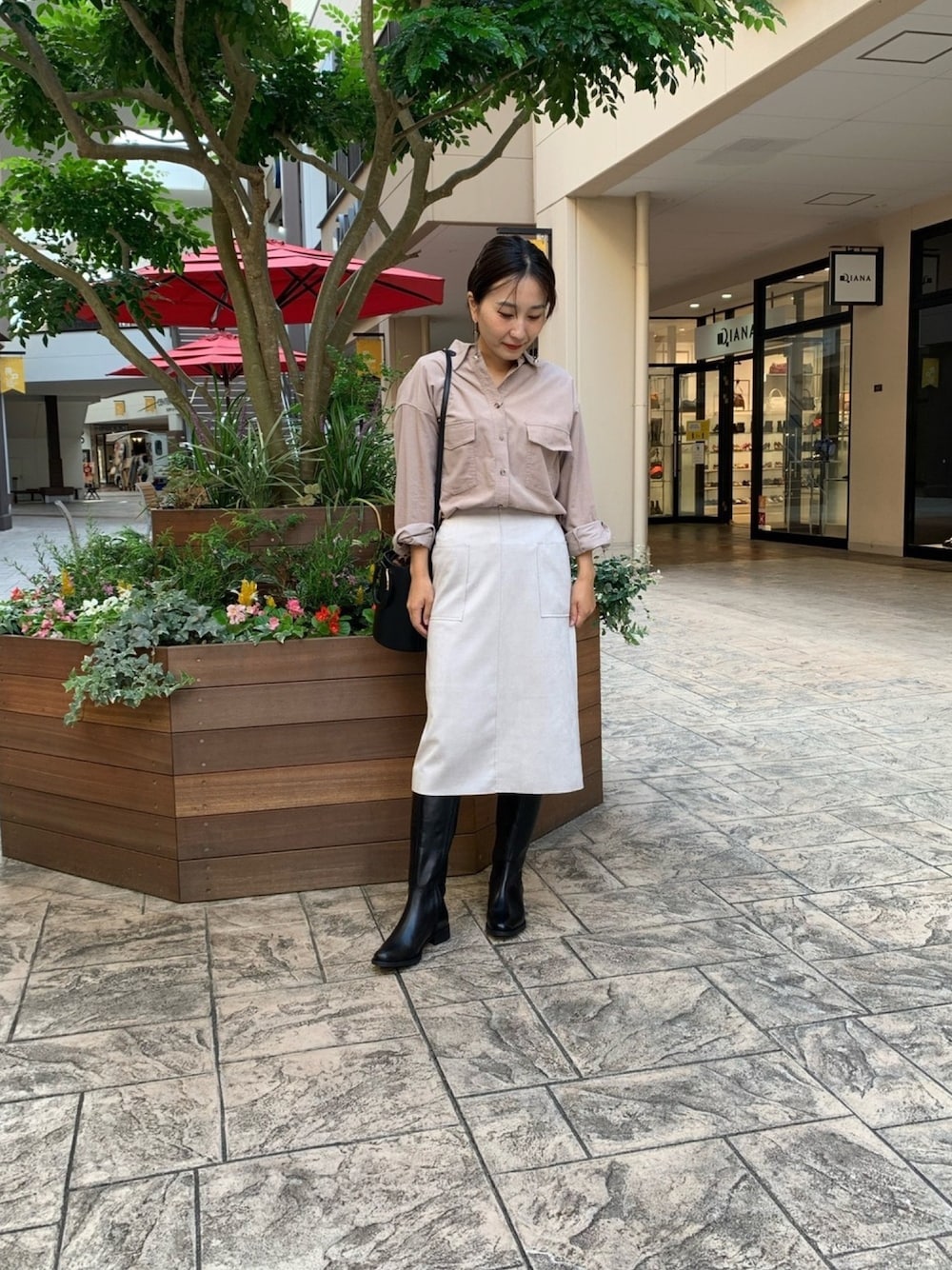 コール天のカジュアルなシャツにタイトなスカートを合わせたシンプルコーデ! 柔らかなトーンの色合わせが女子力高めてくれます。 足元は全体のバランスをまとめてくれるロングブーツで引き締め効果♪