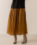 フェイクレザーのボリュームあるスカートには、ふんわりリブニットで柔らかい印象で女らしさUP!