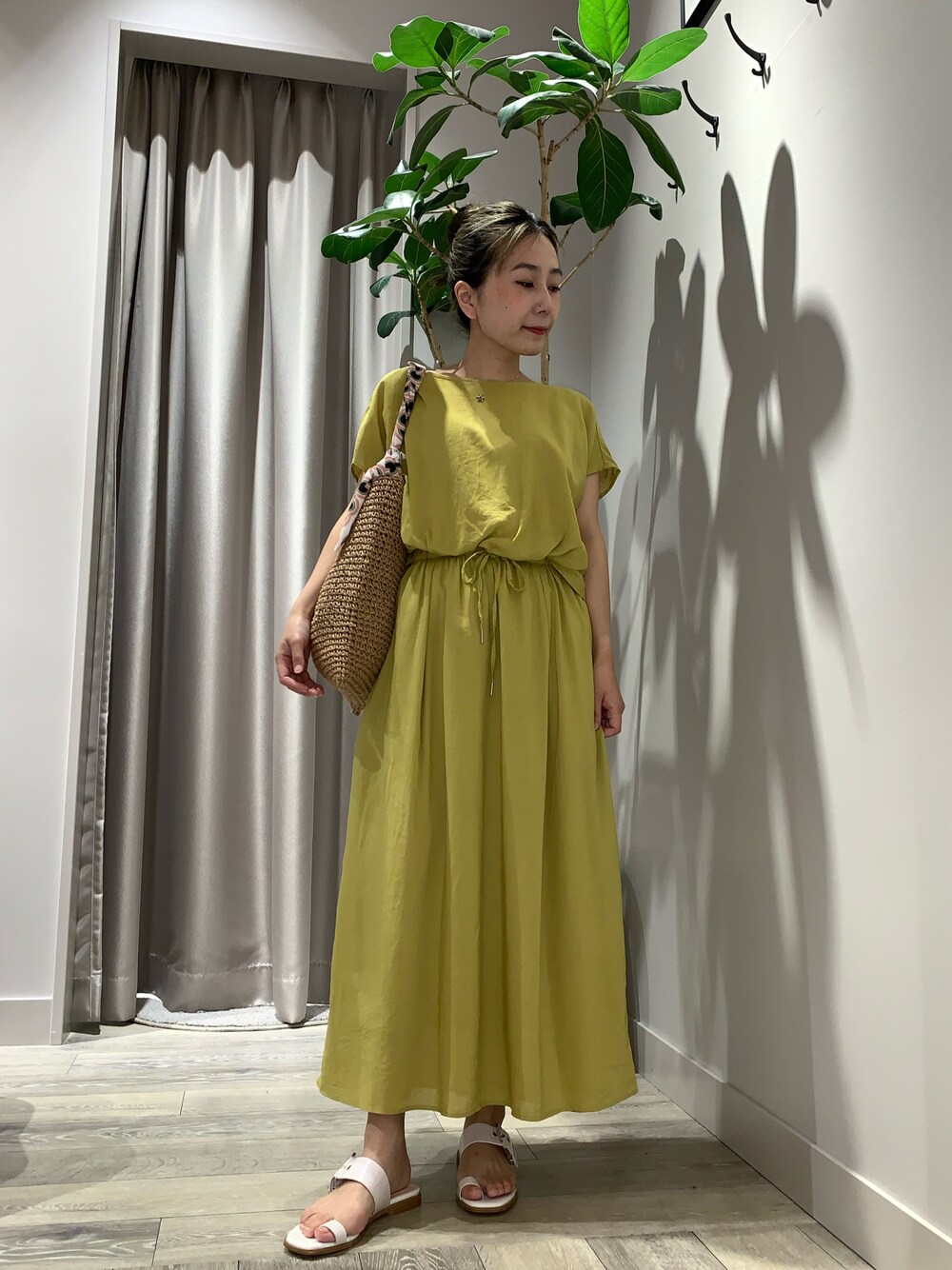 遠藤 裕子(アバハウスルージュヴィフラクレ三井アウトレットパーク 滋賀竜王店(LADIE'S))のワンピース「レーヨンリネンウエストギャザーワンピース」を使ったコーディネート