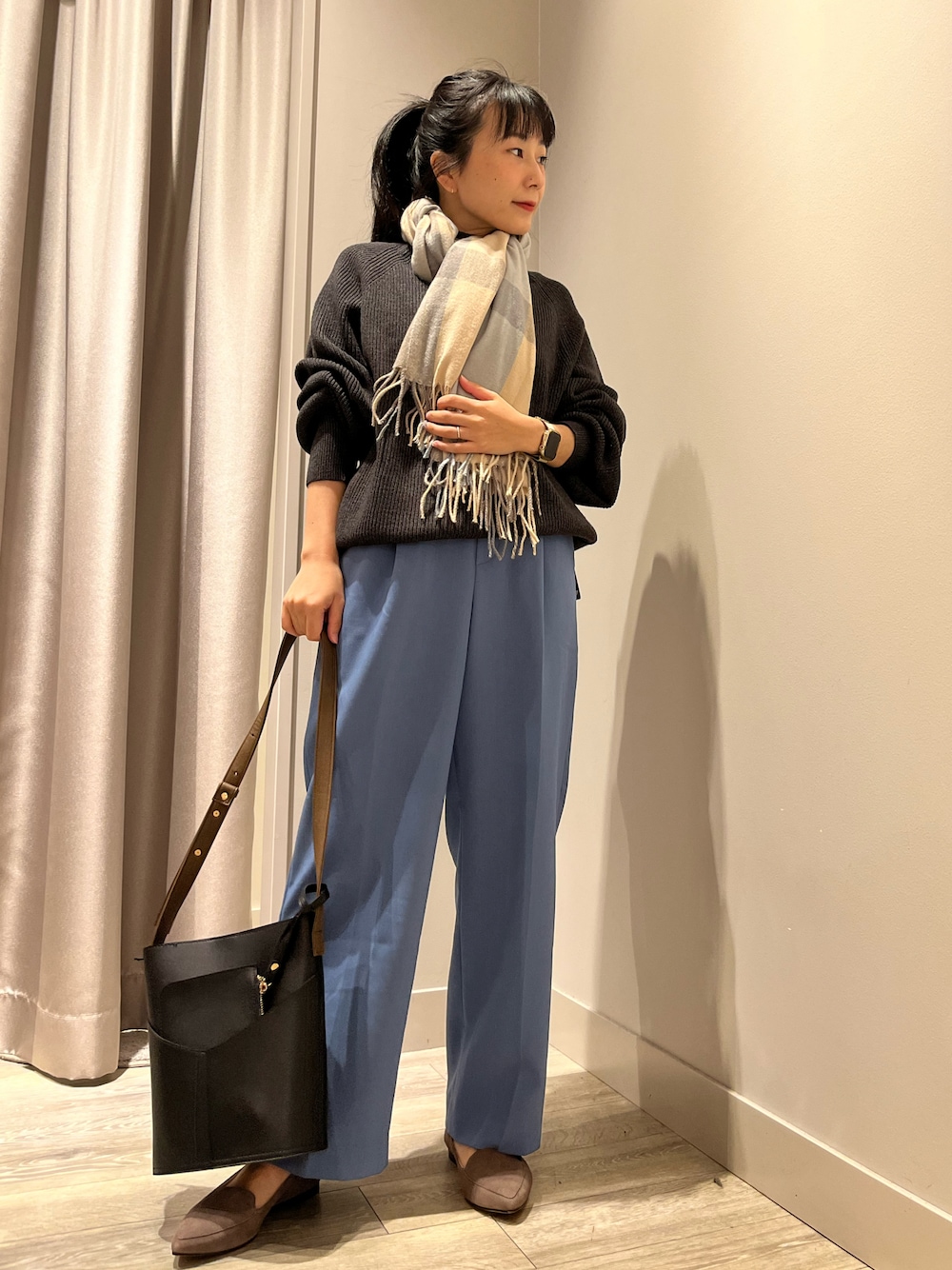 温かみのあるニットとゆるめパンツできれいめコーデ!