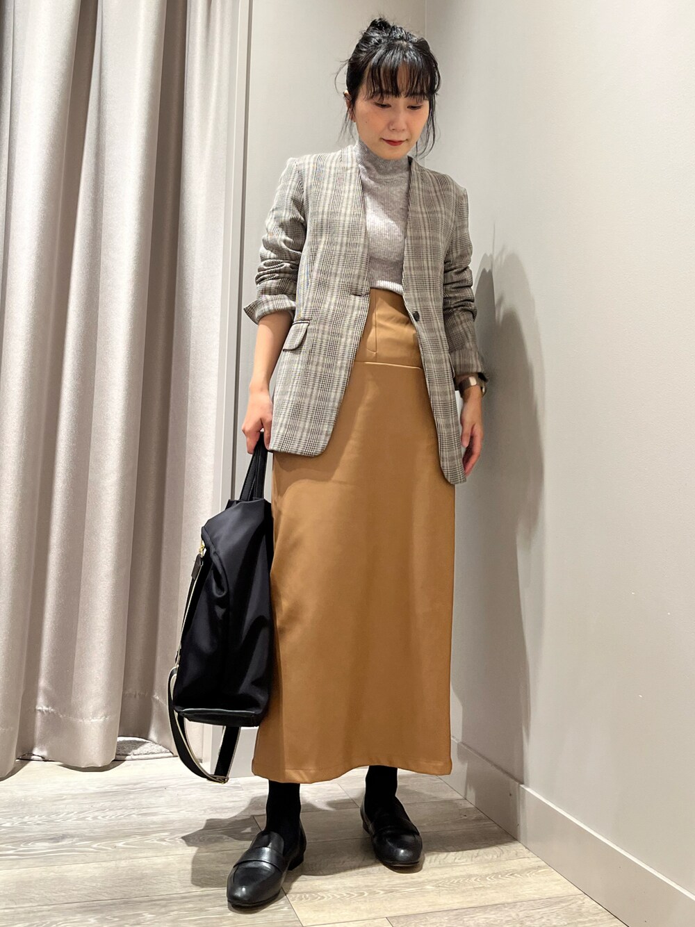 普段使いのジャケットコーデ! タイトなリブニットにはすっきりシルエットが相性ぴったり!