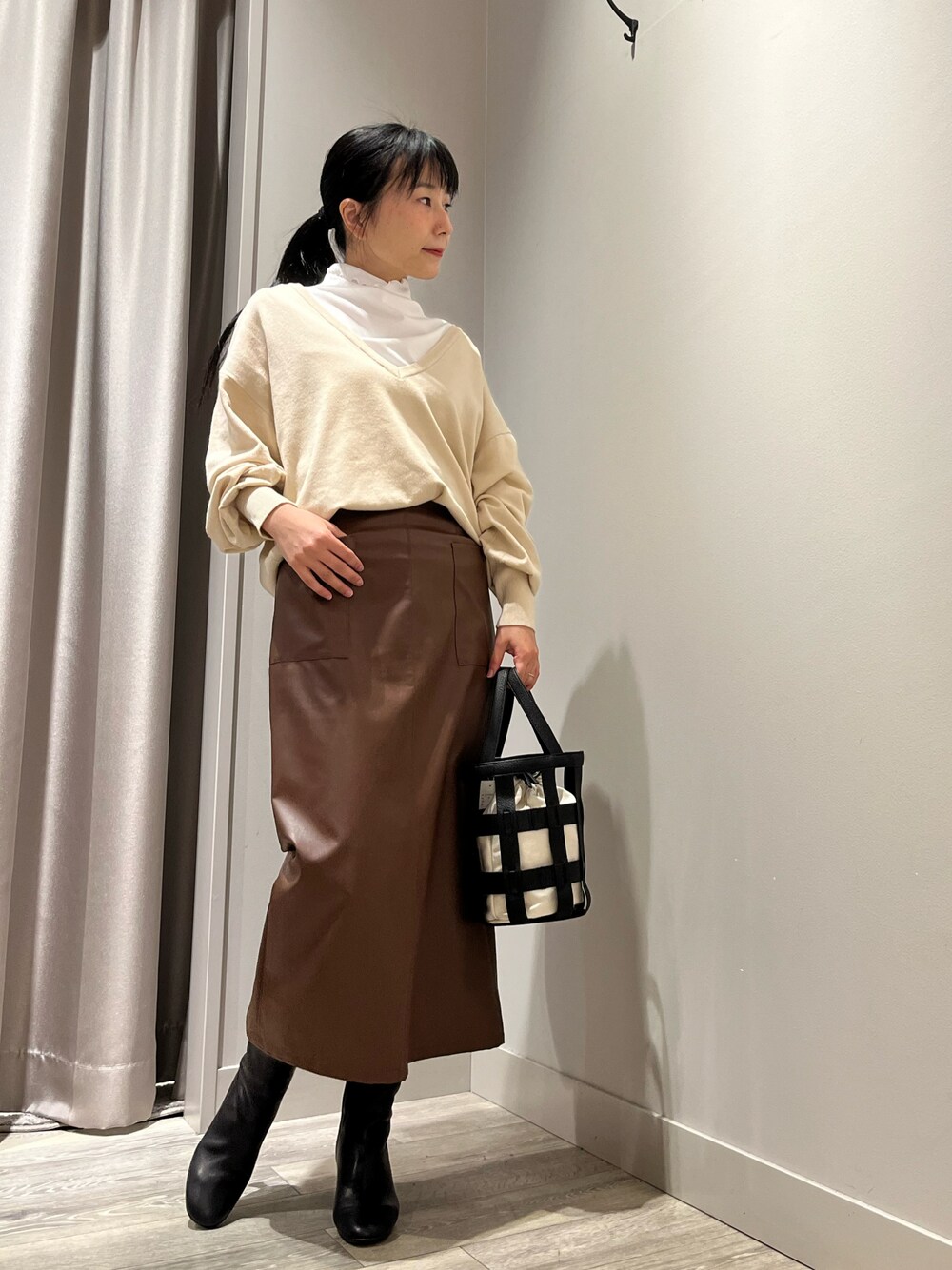 インナーとニットがセットになったアイテムは、春まで使える万能トップスです!