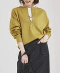 秋カラーのマスタードのカットソーにベージュのパンツで合わせた大人カジュアルスタイル!